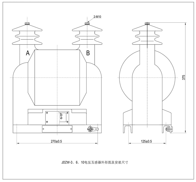 JDZW-3、6、10型電壓互感器適用于戶(hù)外、額定頻率為50Hz或60Hz、額定電壓為10kV的交流電力系統中,作電能計量、電壓監測和繼電保護用。 產(chǎn)品執行標準為GB 1207《電壓互感器》。 |