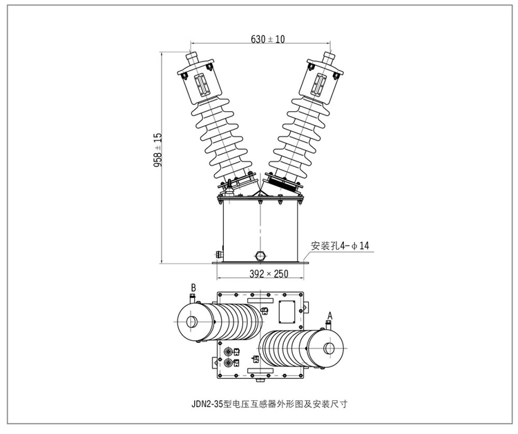 JDN2-35型電壓互感器適用于額定頻率為50Hz或60Hz、額定電壓為35kV的交流電力系統中,供電氣測量和繼電保護用。 產(chǎn)品執行標準為GB 1207《電壓互感器》。 |