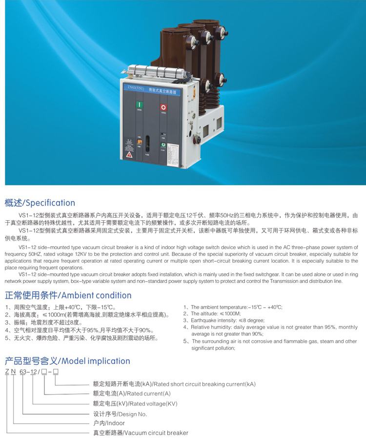 ZN63(VBM7)-12側裝式戶(hù)內真空斷路器