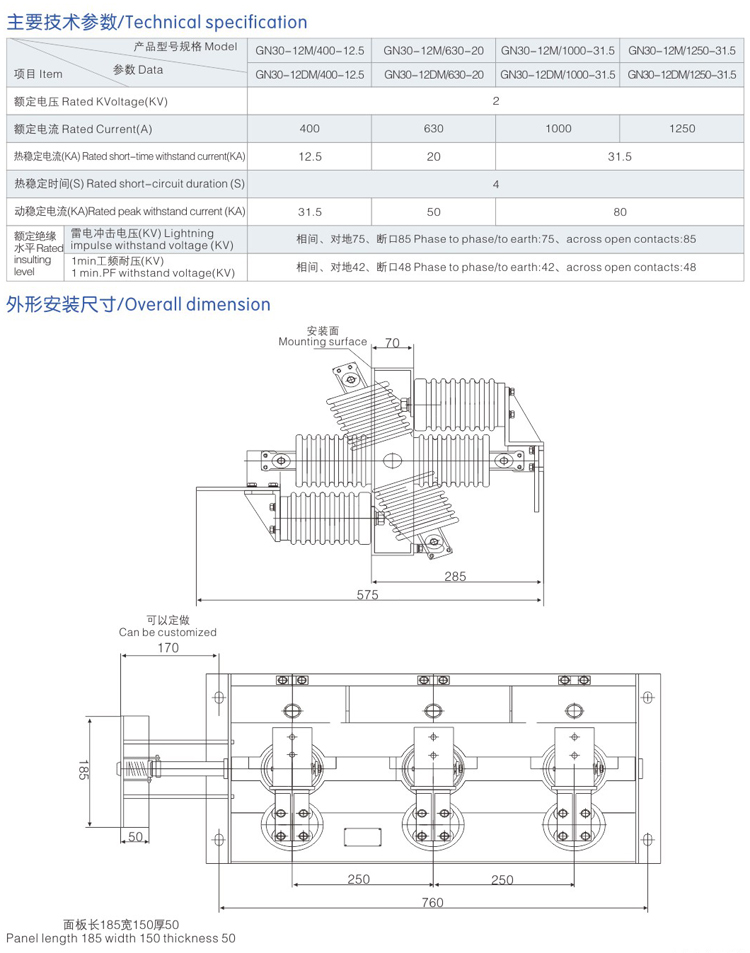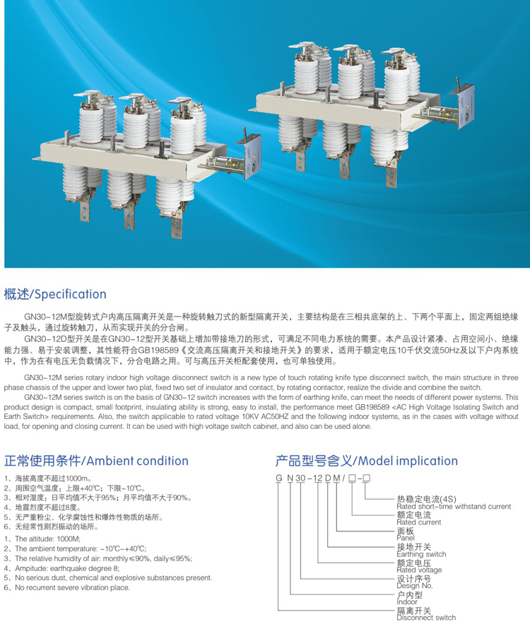 GN30-12M戶(hù)內旋轉式隔離開(kāi)關(guān)