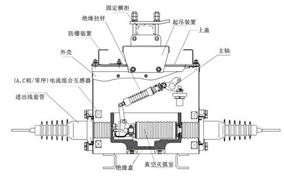 主要由ZW20C-12型真空斷路器本體,故障檢測控制器及外置電壓互感器三大部分組成