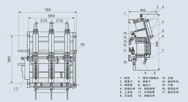 FZN21-12D/T630-20型戶(hù)內高壓真空負荷開(kāi)關(guān)系三相交流50Hz的戶(hù)內高壓開(kāi)關(guān)設備,適合于額定電壓為12kV的配電系統中。開(kāi)關(guān)具關(guān)合、承載、開(kāi)斷負荷及過(guò)負荷電流的能力;亦可開(kāi)斷、關(guān)合空載長(cháng)線(xiàn)、空載變壓器及電容器。